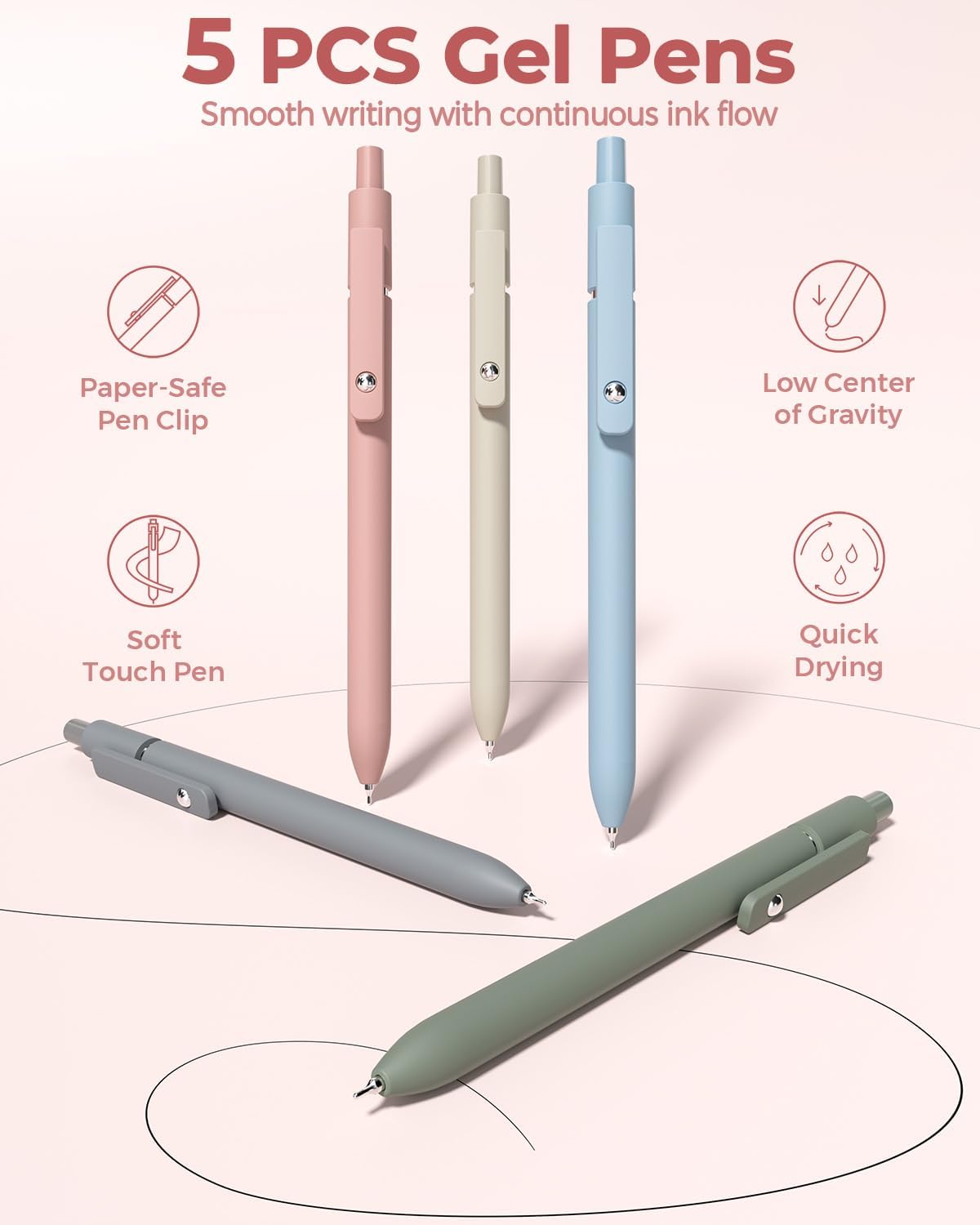 Featuring a cute pencil case to keep your supplies neat and accessible, this set includes 6 multicolor pens for vibrant note-taking, 12 pastel highlighters for colorful studying, 5 gel pens with black ink for smooth writing, and 9 mechanical pencils for precise and effortless drawing and writing.